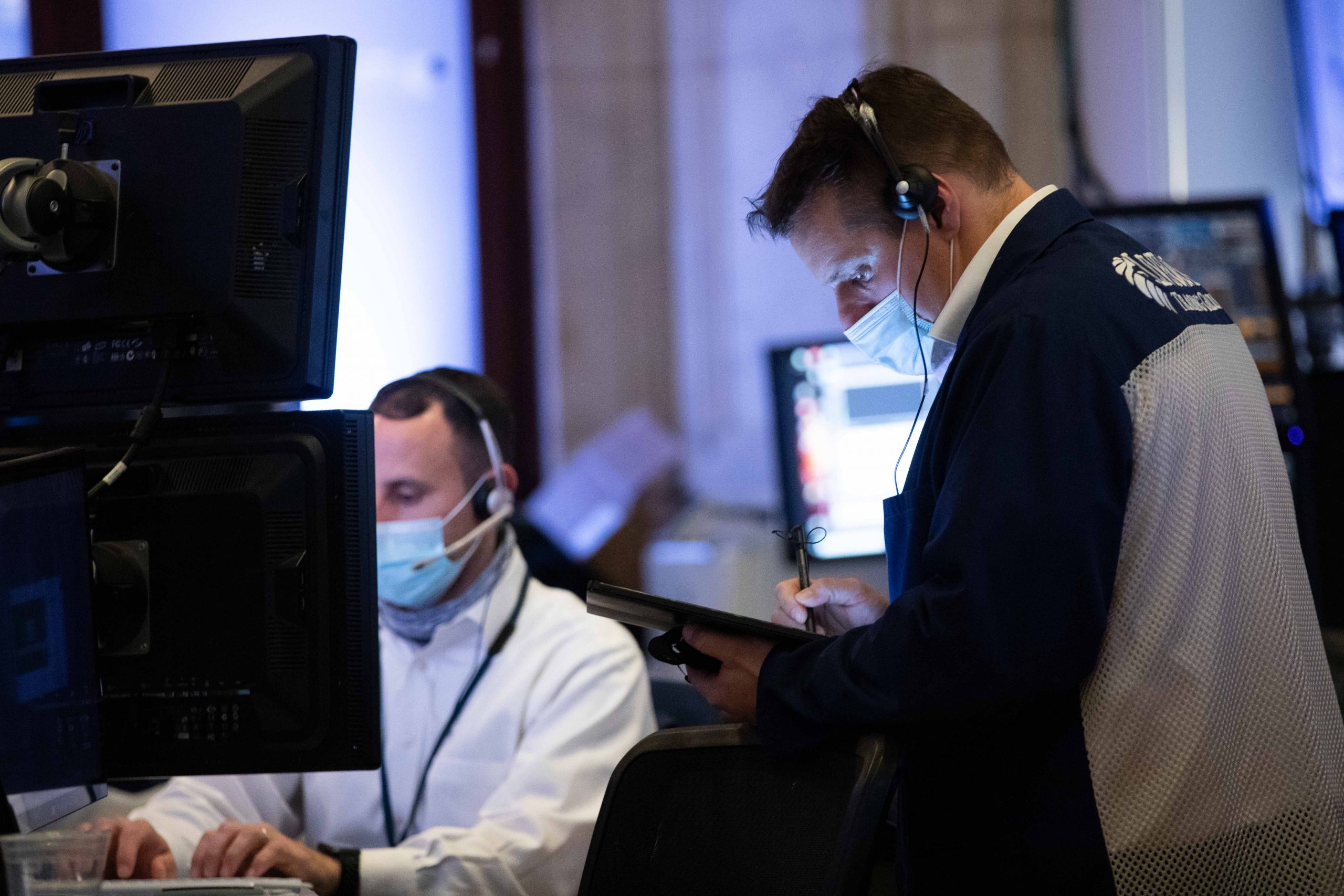 A man walks outside of the New York Stock Exchange (NYSE) in New York, November 24, 2020.
