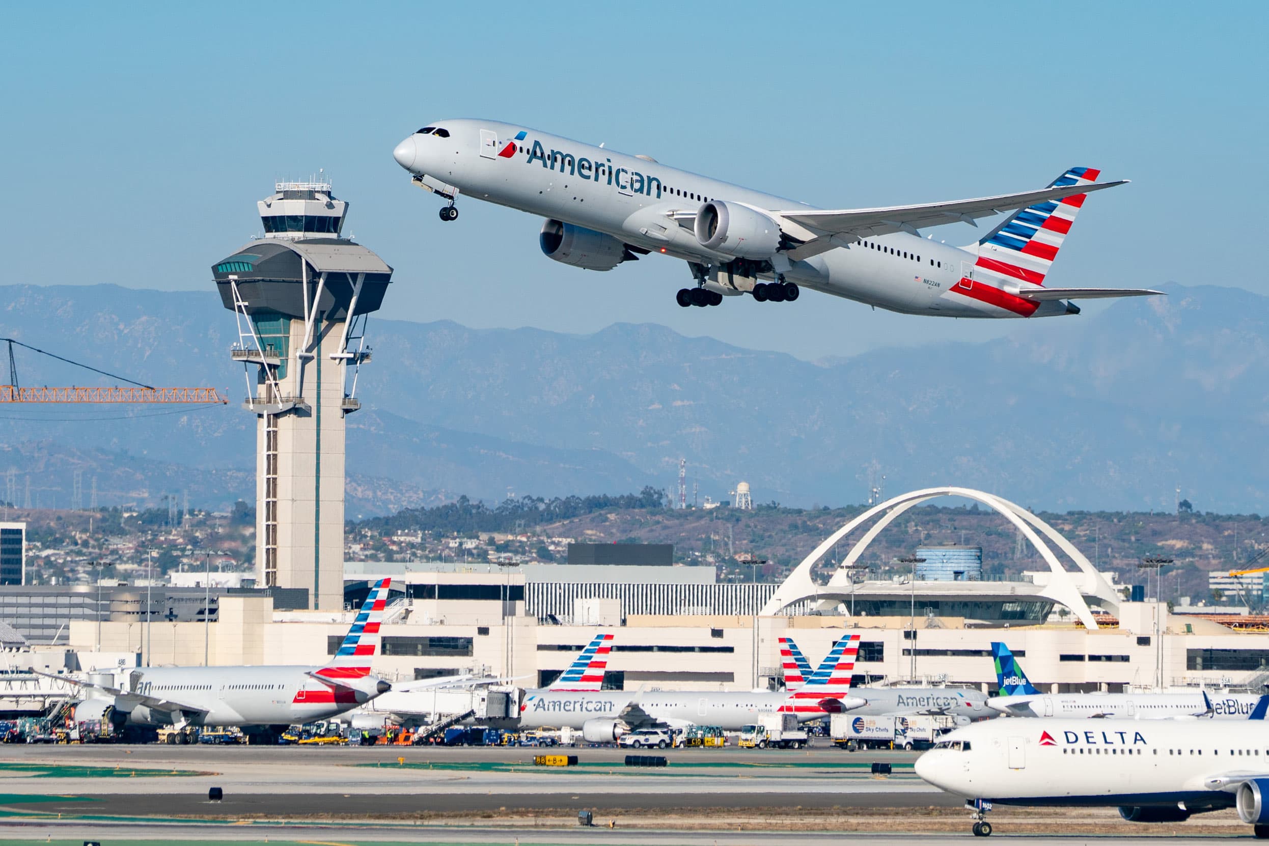 American Airlines Boeing 787-9 Dreamliner takes off from Los Angeles International Airport in Los Angeles, California on November 11, 2020.