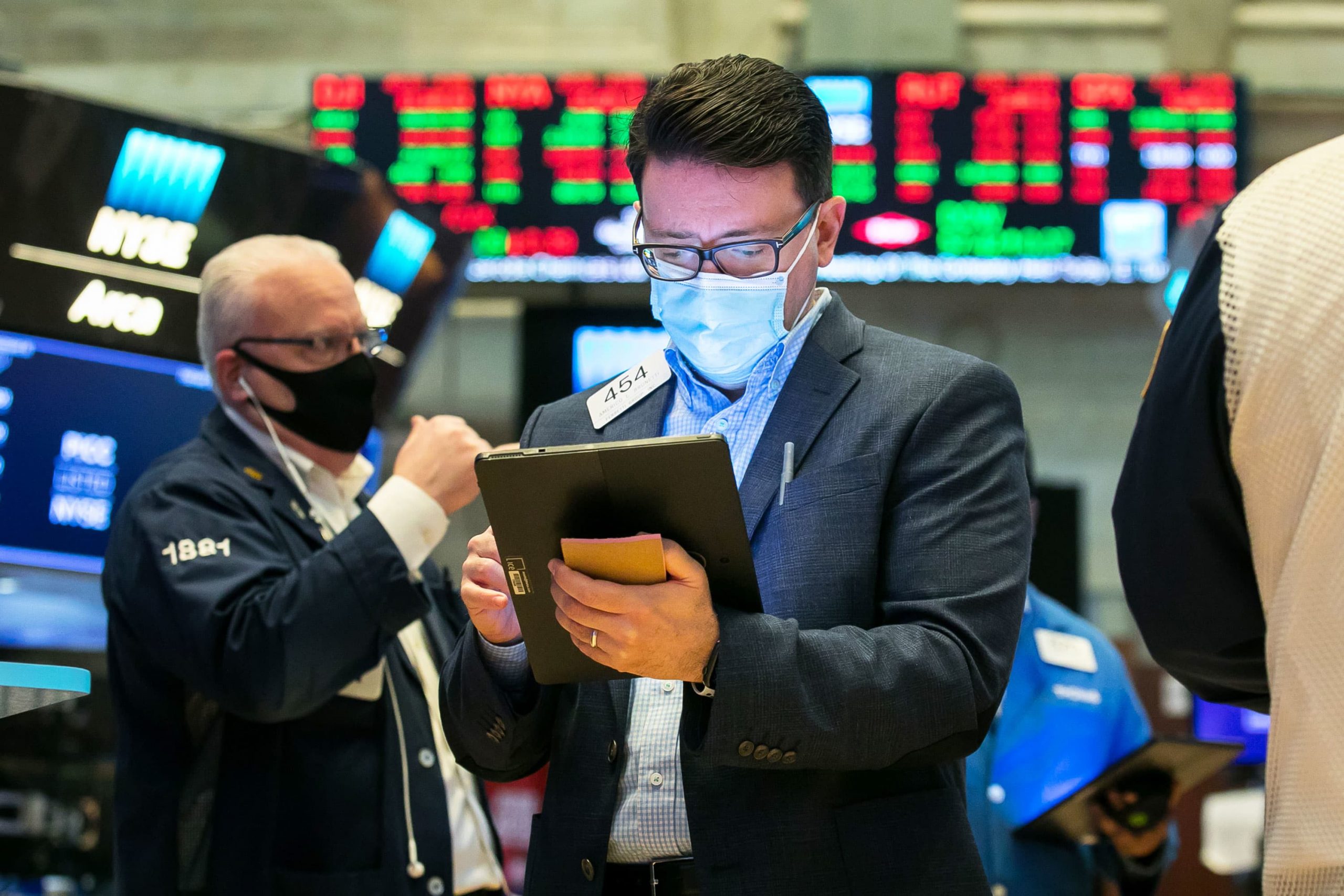 Traders on the floor of the New York Stock Exchange.
