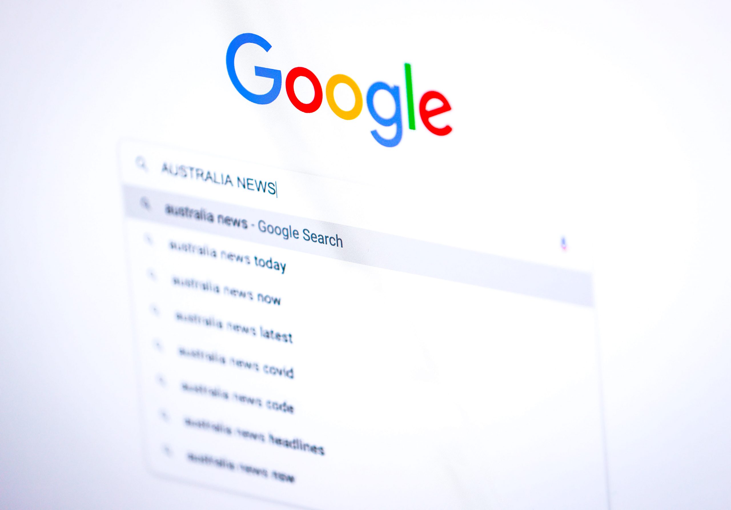 A search for “Australia News” on the Google Home page on a desktop computer in Sydney, Australia on Friday January 22, 2021.