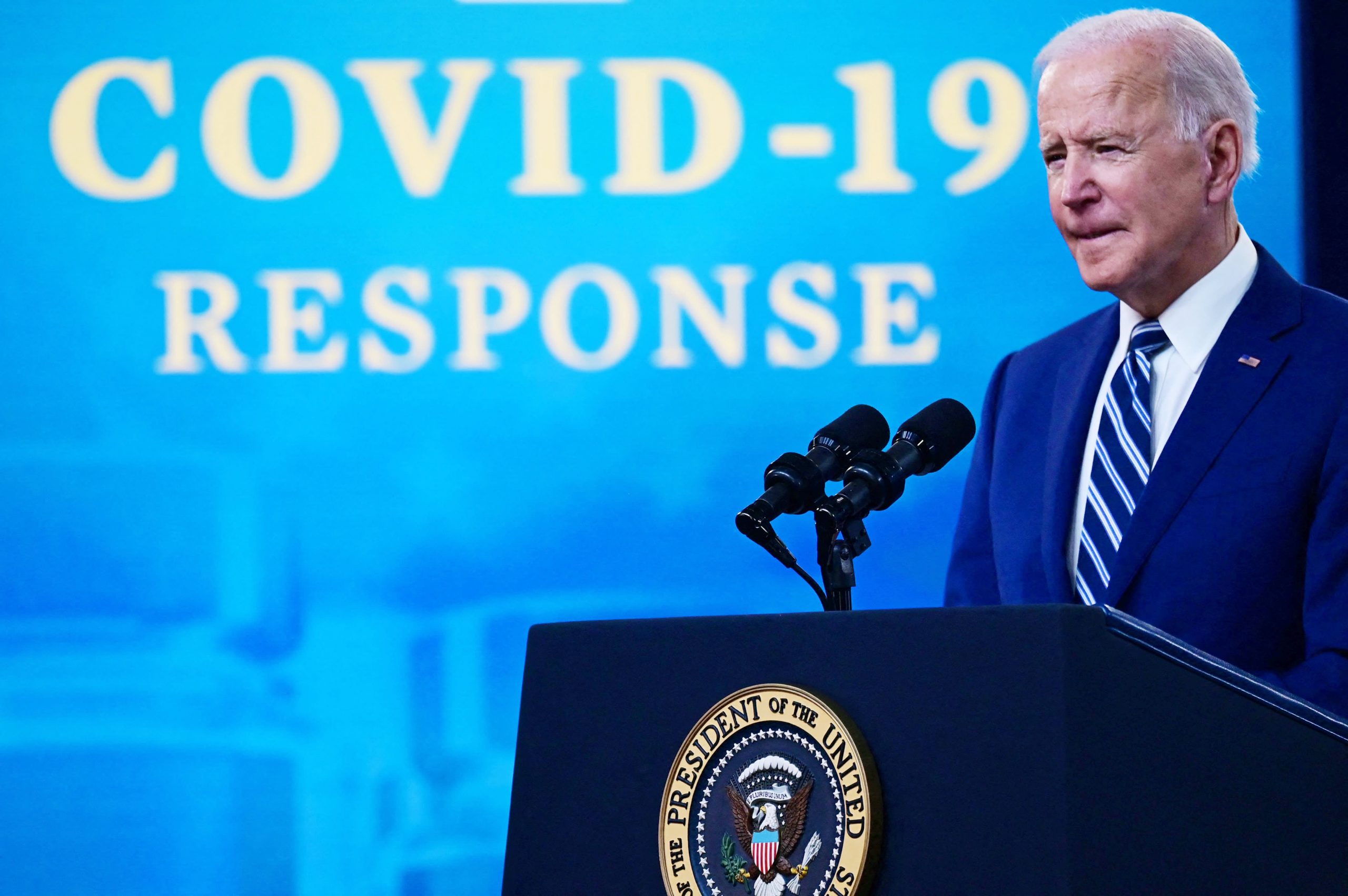 President Joe Biden speaks about Covid-19 reactions and vaccinations in the South Court Auditorium of the White House in Washington DC on March 29, 2021.