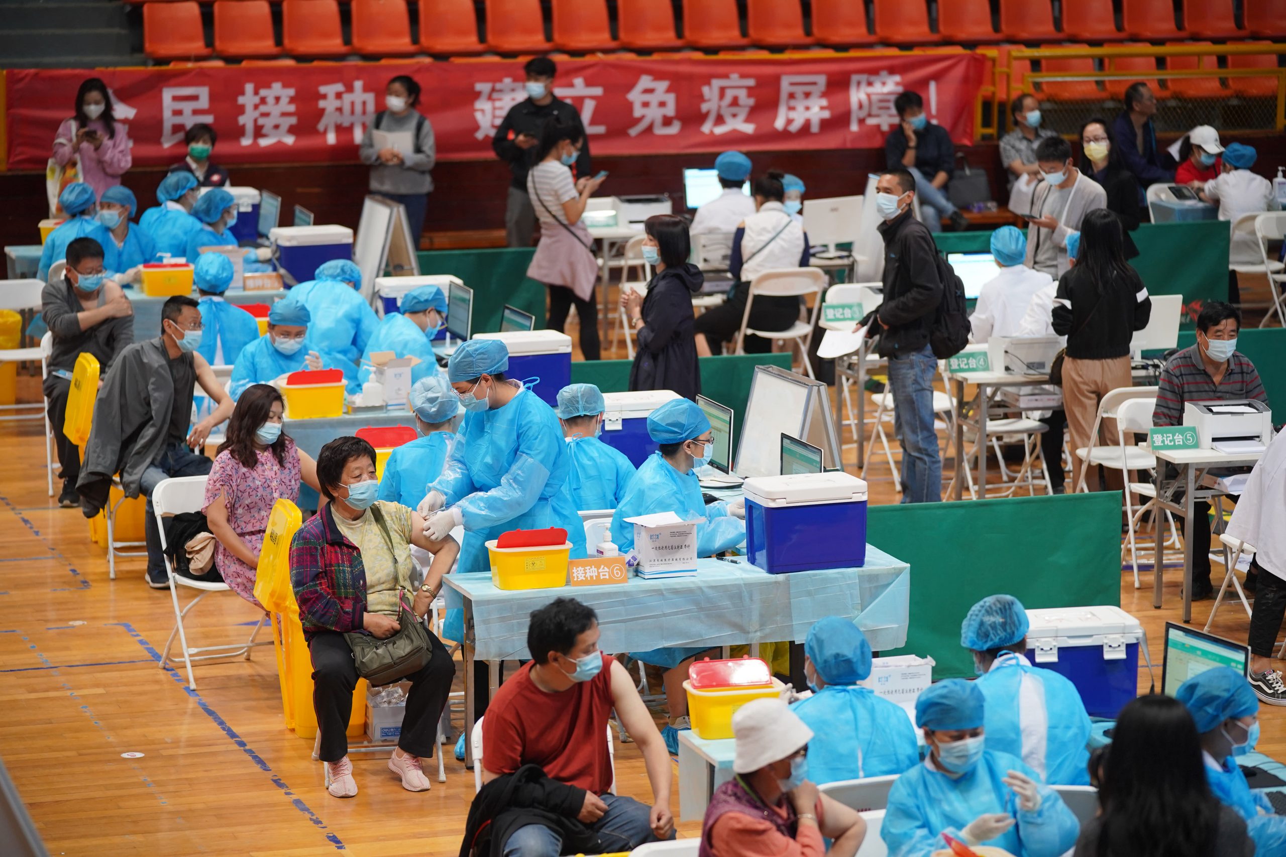 People who received Covid-19 shots at a temporary vaccination site in Kunming, Yunnan Province, China, on April 15, 2021.