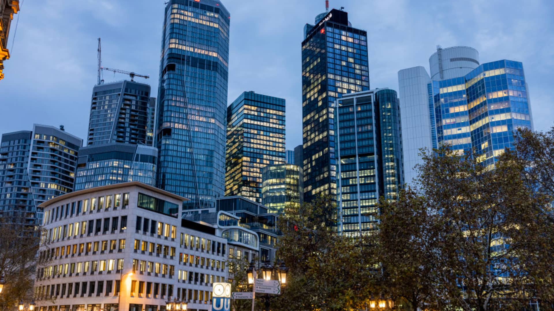 The Frankfurt Skyline at dusk on a November day.