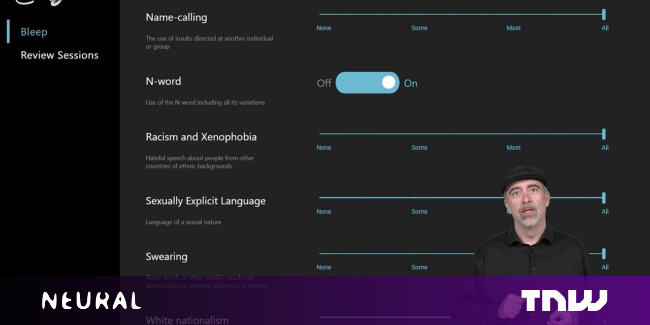 What you see is the user interface for Bleep. An AI-powered software solution with a series of sliders and toggles that you can use to determine how much hate speech in a given category you want to hear when chatting with players in multiplayer games.