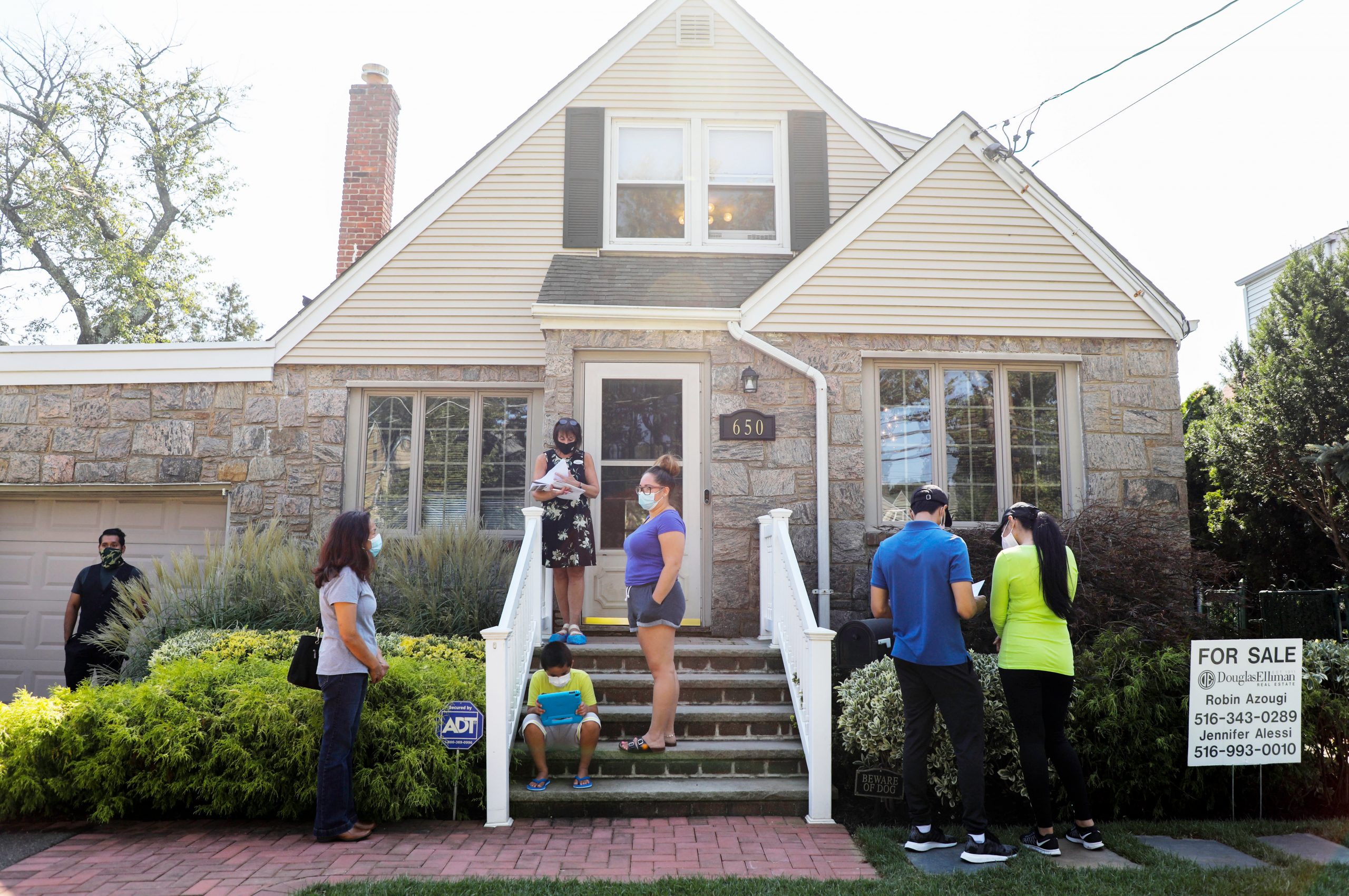 People wait to visit a home for sale in Floral Park, Nassau County, New York, United States on September 6, 2020.