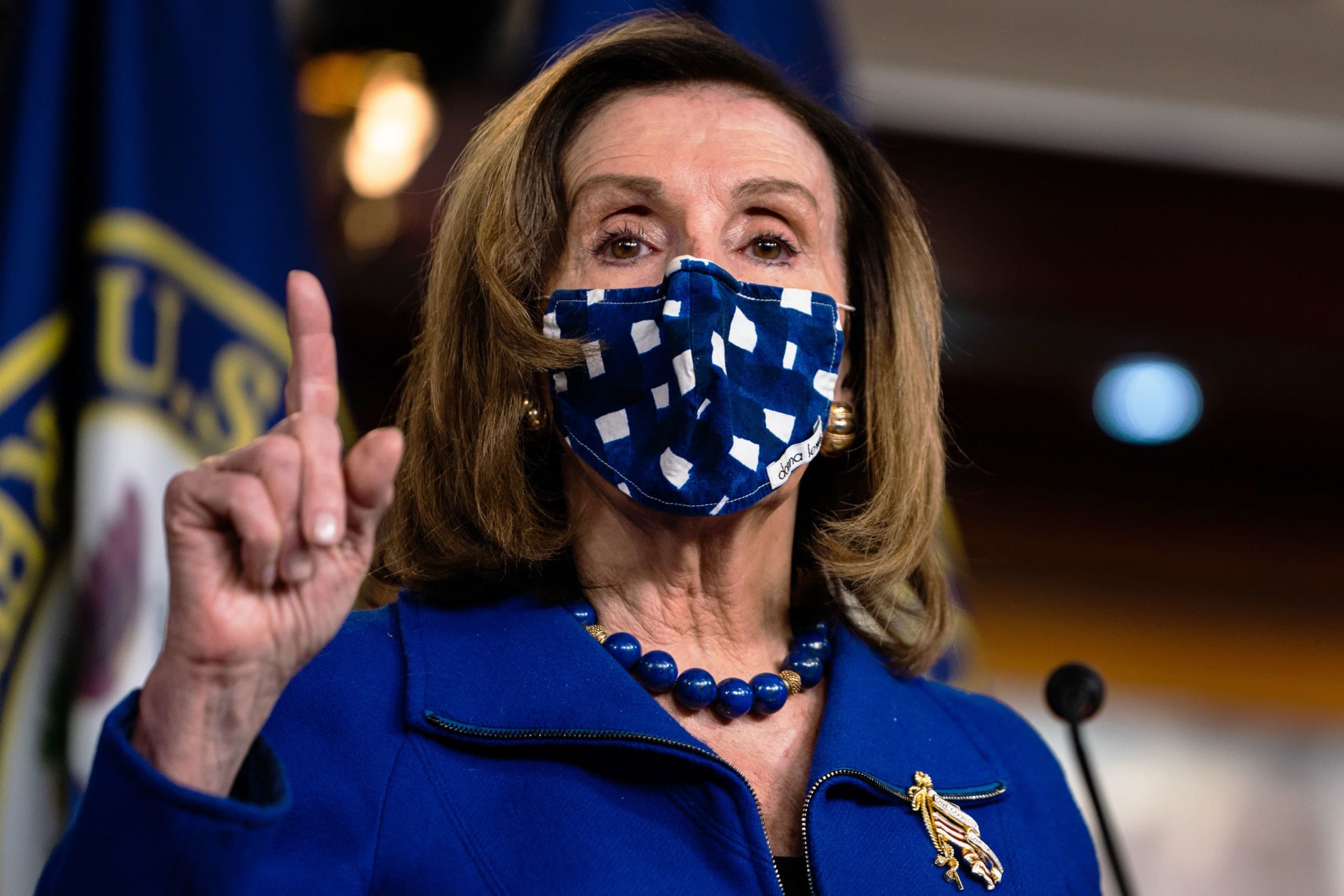 House Speaker Nancy Pelosi speaks during her weekly press conference at the HVC Studio A Capitol Visitor Center at the Capitol in Washington DC on Thursday, February 4, 2021.