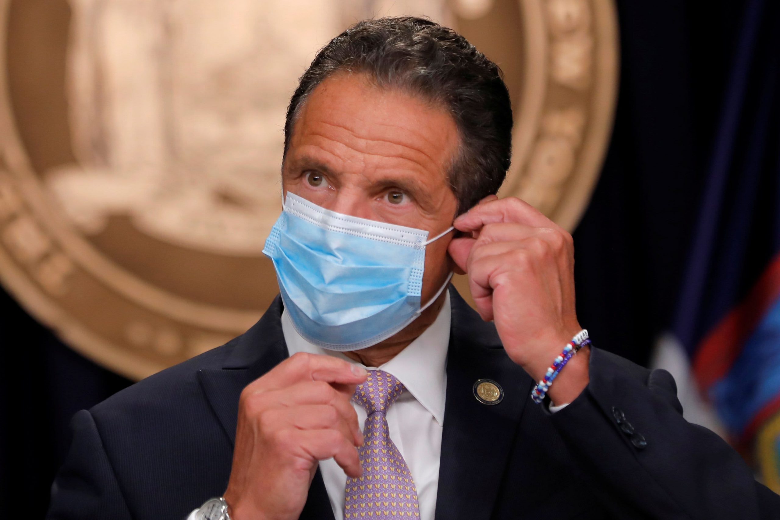 New York Governor Andrew Cuomo wears a protective face mask as he approaches during a daily briefing following the coronavirus disease (COVID-19) outbreak in Manhattan in New York City, New York, the United States, on July 13, 2020 Word comes.