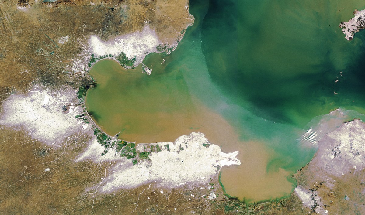 This Envisat image shows parts of Hebei Province, Tianjin Municipality, and Bohai Bay of the People’s Republic of China. Via Wikipedia