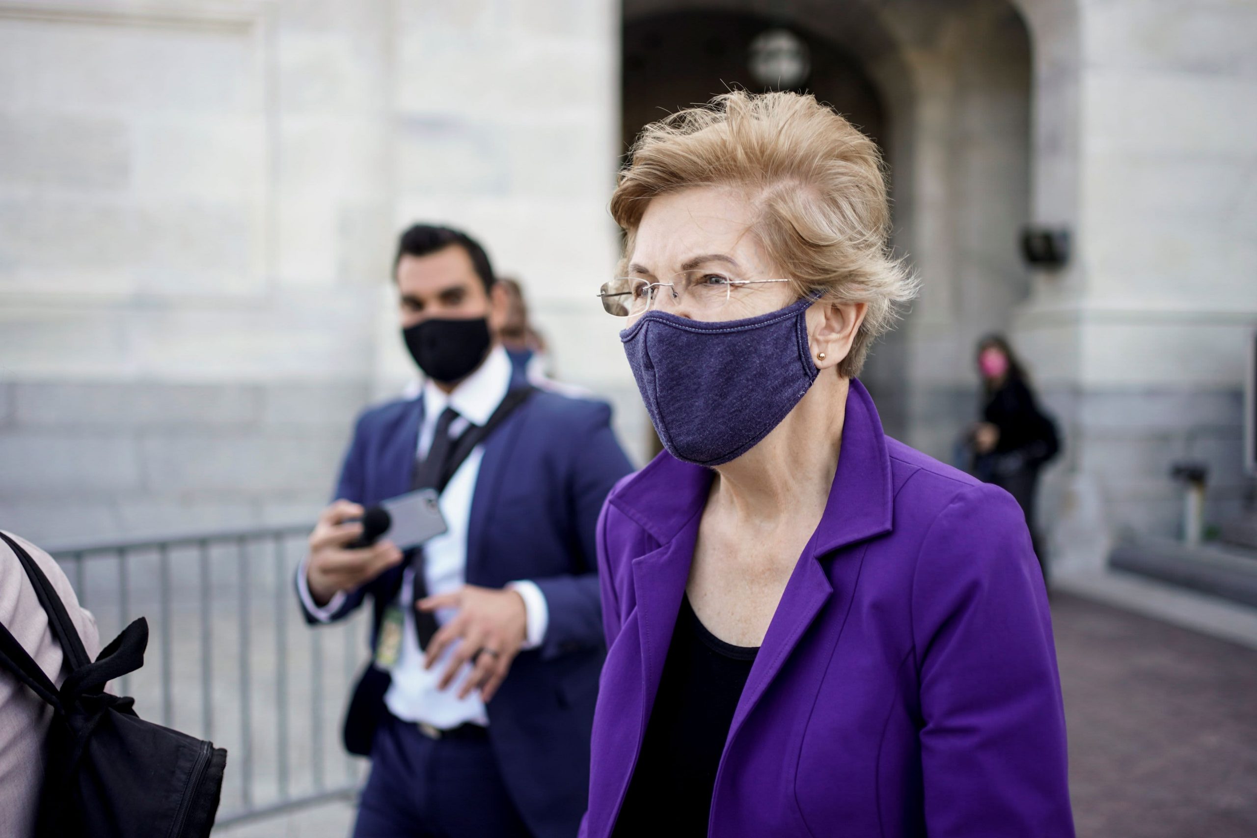 Senator Elizabeth Warren (D-MA) departs after a vote on Capitol Hill in Washington, United States, on September 22, 2020.