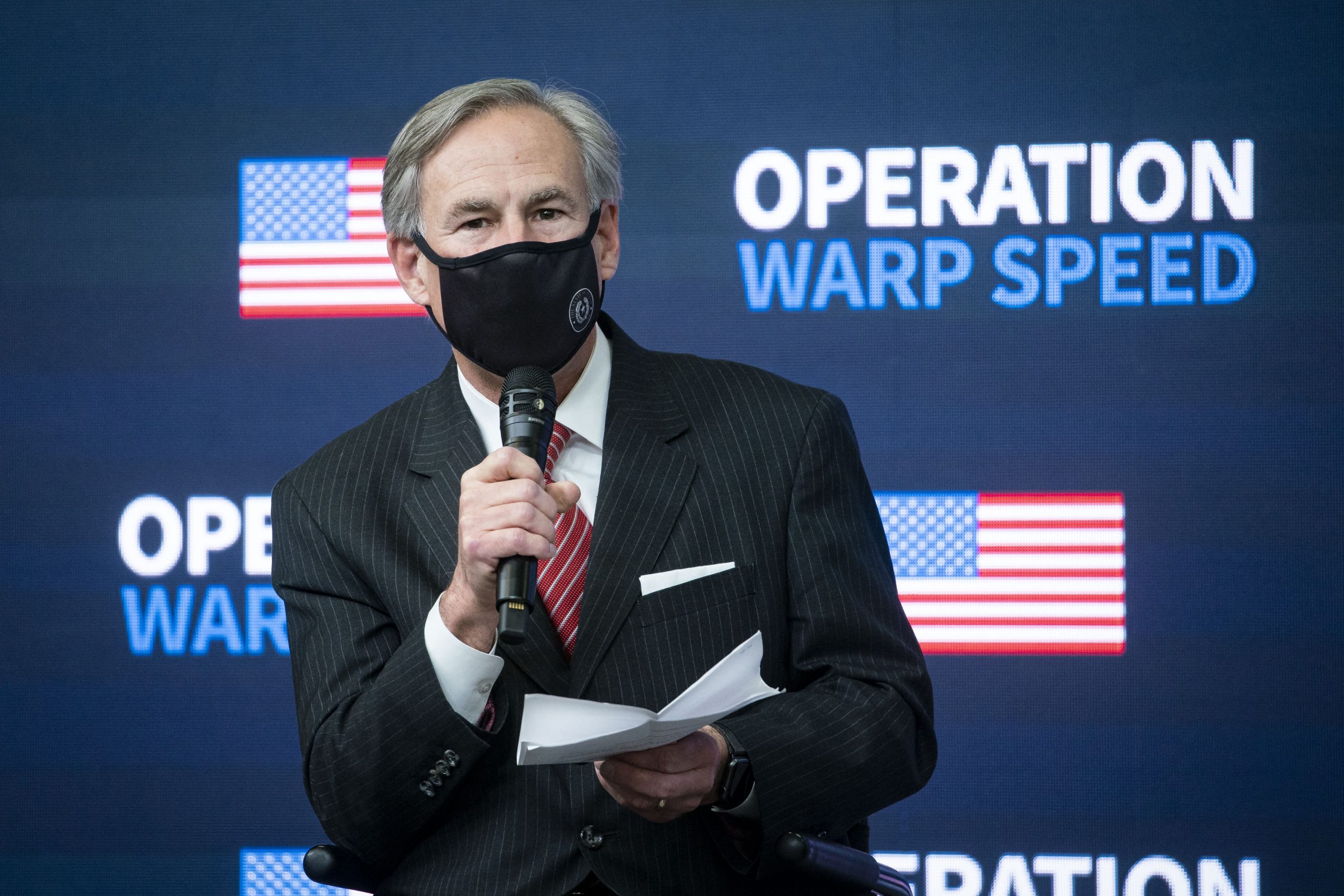 Texas Governor Greg Abbott speaks during an Operation Warp Speed Vaccination Summit at the White House in Washington, DC on Tuesday, December 8, 2020.