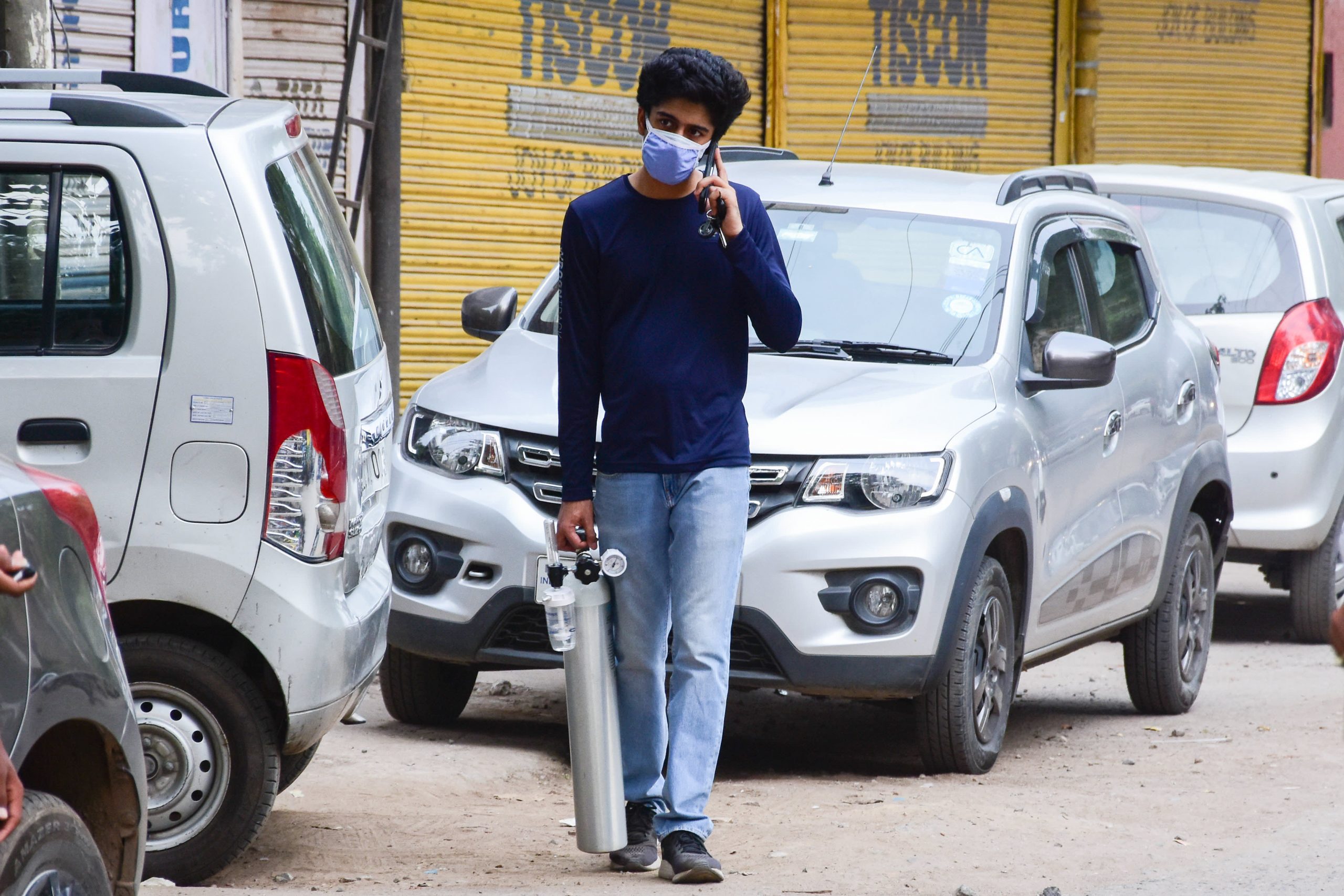 A family member of a Covid-19 infected patient saw him carry an empty oxygen bottle outside a store to refill amid the rising number of coronavirus cases.