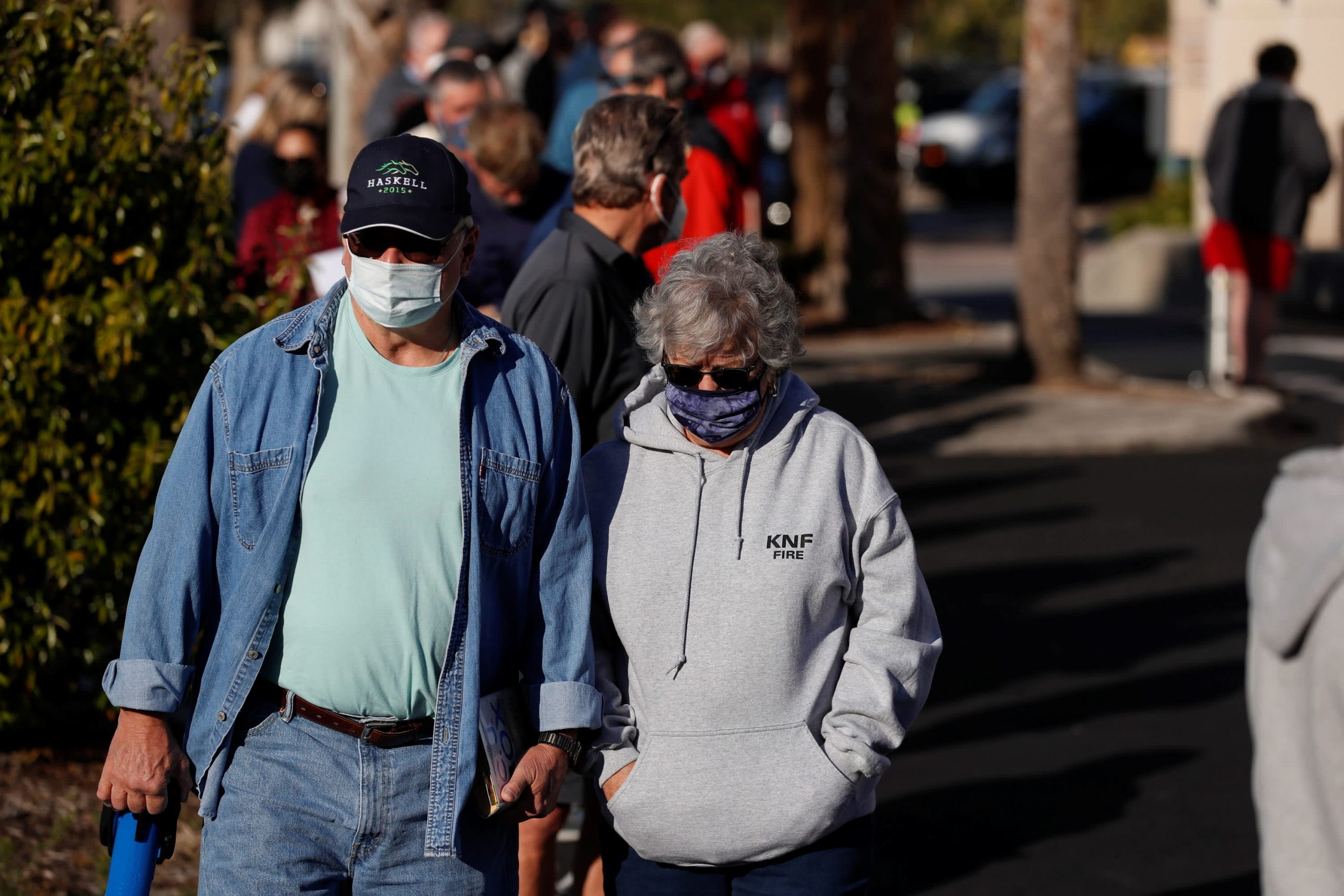 Seniors 65 years and older wait in line at the Sarasota Department of Health’s COVID-19 Vaccination Clinic in Sarasota, Florida, the United States, Jan. 4, 2021.