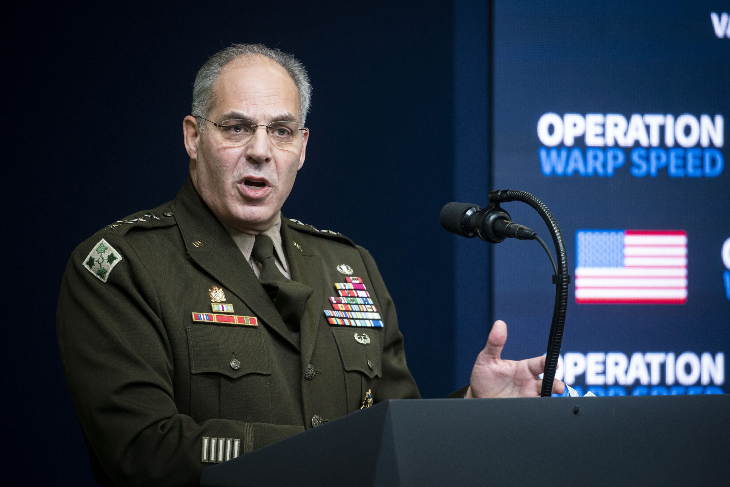General Gustave Perna, Chief Operating Officer for Project Warp Speed for the Department of Defense, speaks during an Operation Warp Speed Vaccination Summit at the White House in Washington, DC, the United States, on Tuesday, December 8, 2020.