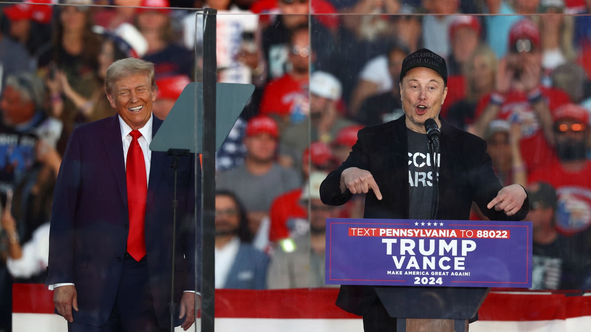 In the middle of Trump's speech, Elon Musk took the stage to praise the former president.