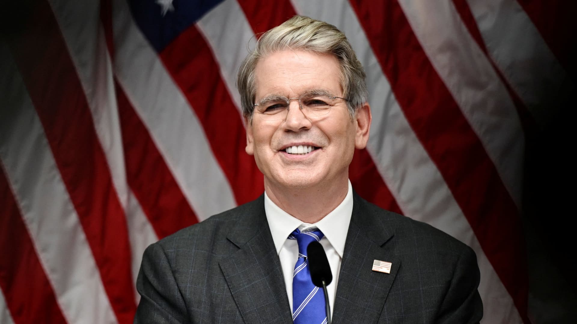The US Finance Minister Scott Bessent takes part in a press conference in the Rosenbad government districts after the trade talks between the USA and China in Stockholm, Sweden, came to the conclusion on July 29, 2025.