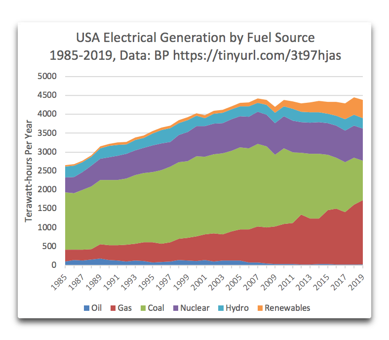 And remember, this is just electricity. It does not contain the large amount of fossil fuels used directly by industry, transportation and space heating.