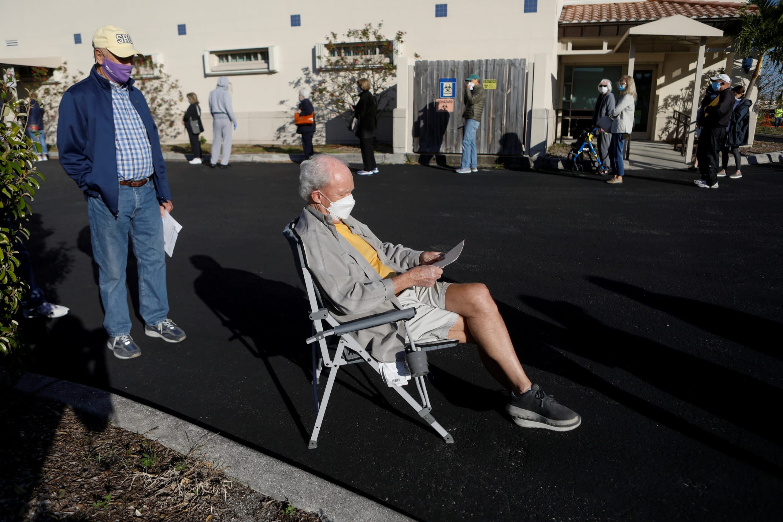 Elderly people aged 65 and over stand in line at the Department of Health’s COVID-19 Vaccination Clinic in Sarasota, Florida, United States, Jan. 4, 2021.