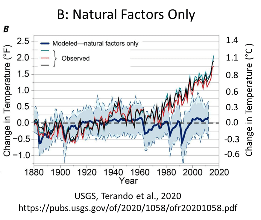 Figure 1.Modeled human and natural climate forcing compared to three instrument records (see Terando for details) Figure 2.Modeled human climate forcing compared to three instrument records (see Terando for details)
