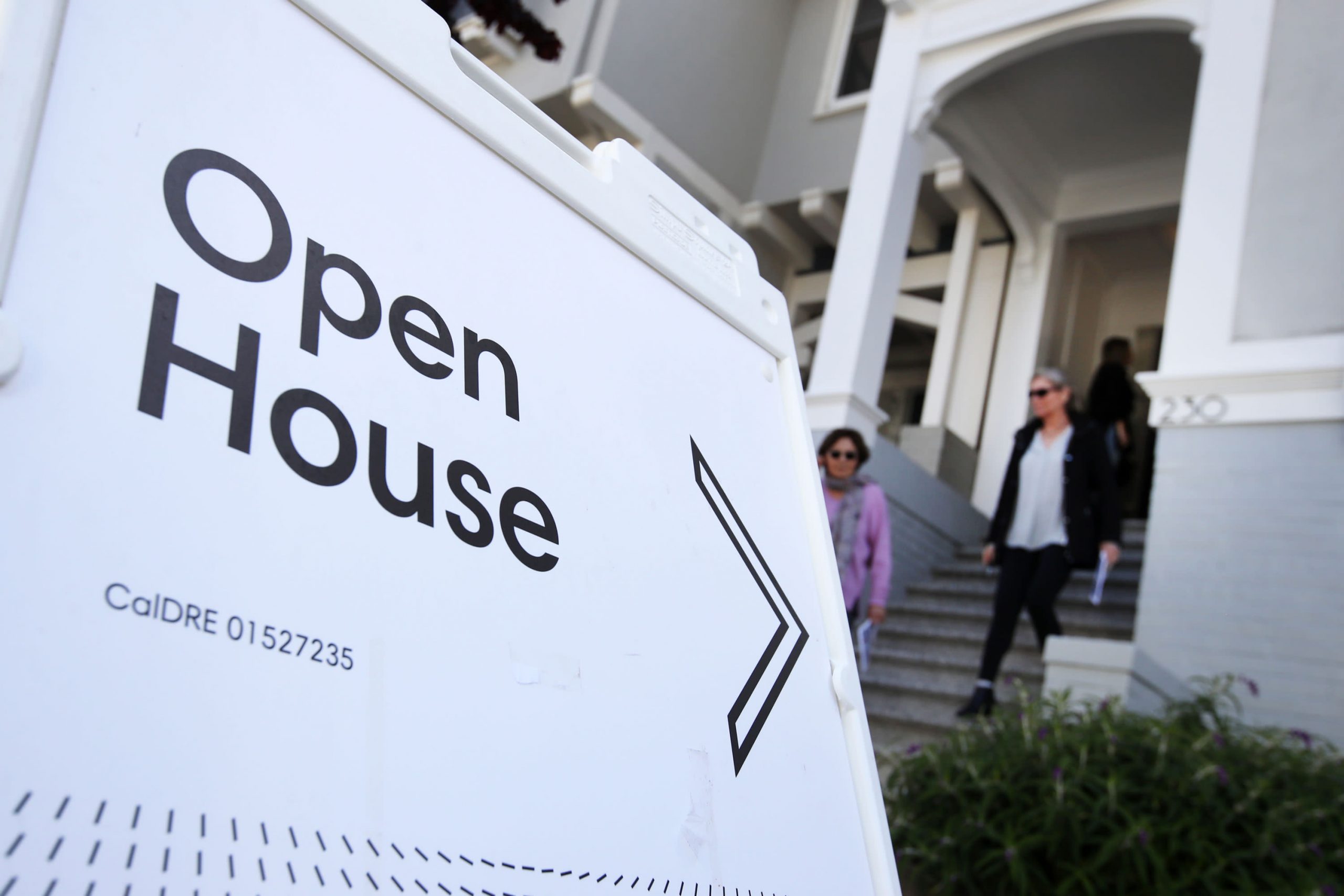 Real estate agents leave a home for sale during a realtors open house in San Francisco, California.
