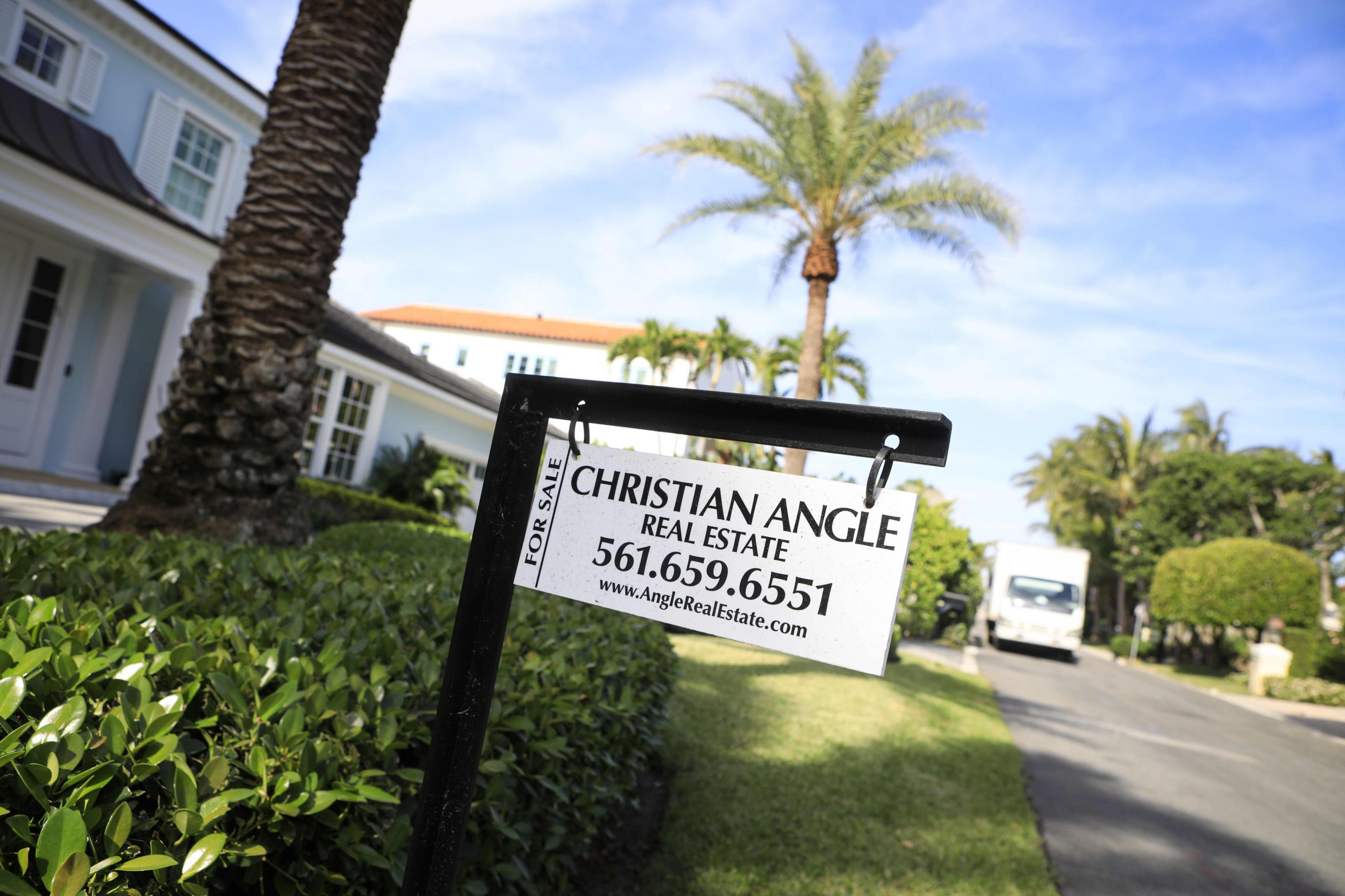 A “For Sale” sign outside a home in Palm Beach, Florida on Wednesday, April 7, 2021.