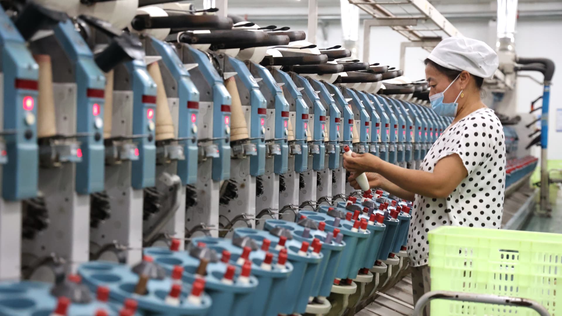 A worker places textile export orders at a production workshop of a textile company in Binzhou, China, July 8, 2024.