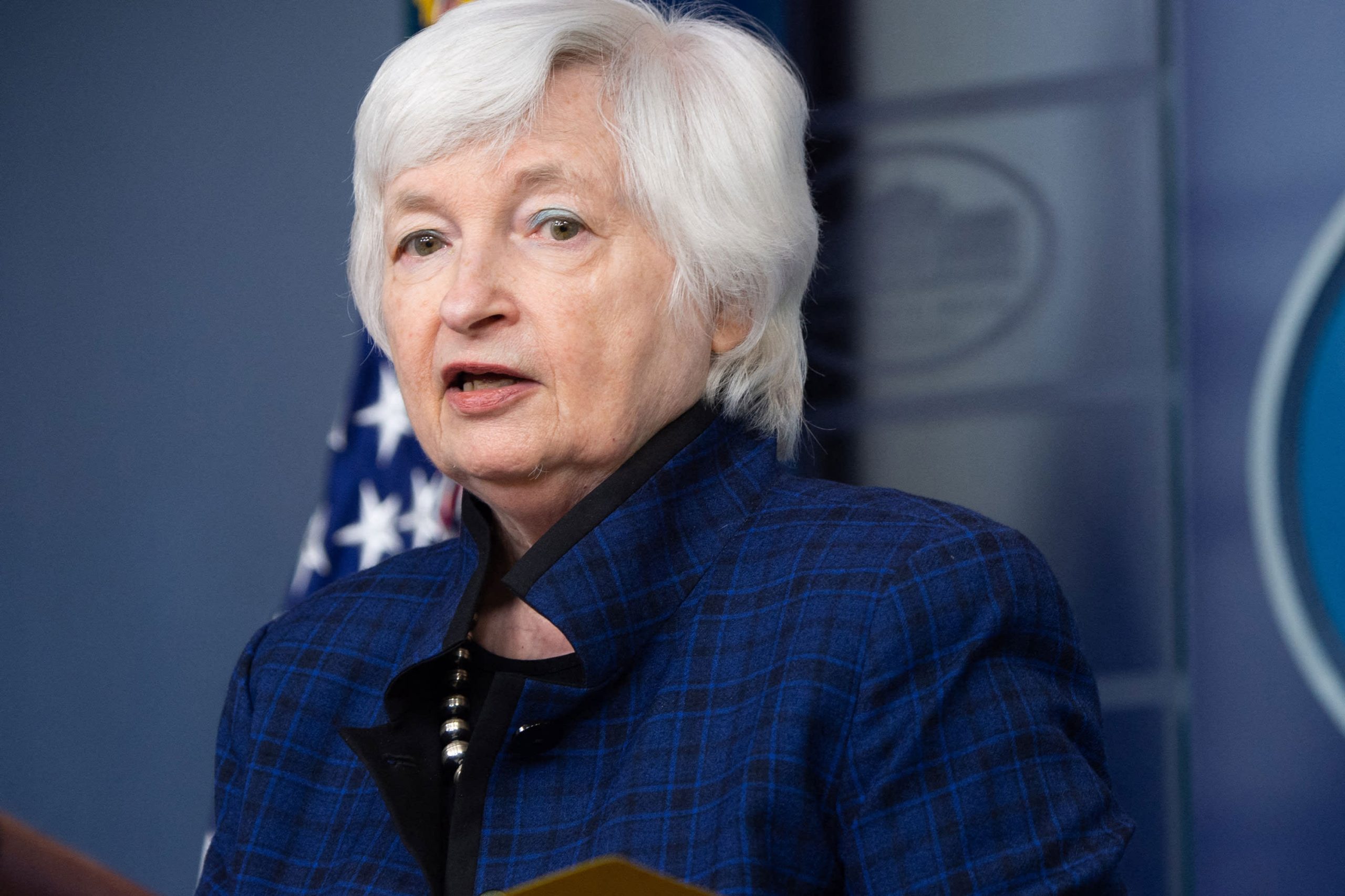 Treasury Secretary Janet Yellen speaks during a daily press conference in the James Brady Press Briefing Room of the White House on May 7th in Washington, DC.